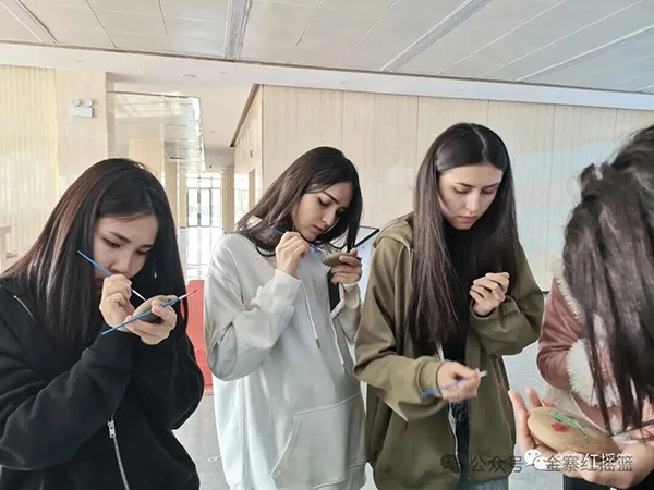 在随后的非遗体验环节,同学们亲手参与传统挂面制作。从揉面、搓条到拉丝、晾晒,留学生们在老师的指导下体验着这门传承千年的手艺。“面条里居然有这么多学问”,一位来自中亚的留学生一边学着绕面一边感慨,“这不仅是一种食物,更是中国人的生活艺术。”