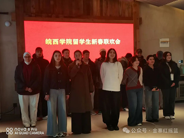 时近农历新年,许多留学生因学业无法回国团聚。为此,当天下午基地特别为留学生们举办了一场温馨活泼的新春联欢会。皖西本地居民热情参与,金寨非遗打花棍、皖西特色民俗表演,浓浓年味弥漫在民宿院落中。留学生们也献上各具特色的歌舞,中外文化在欢声笑语中交汇相融。
